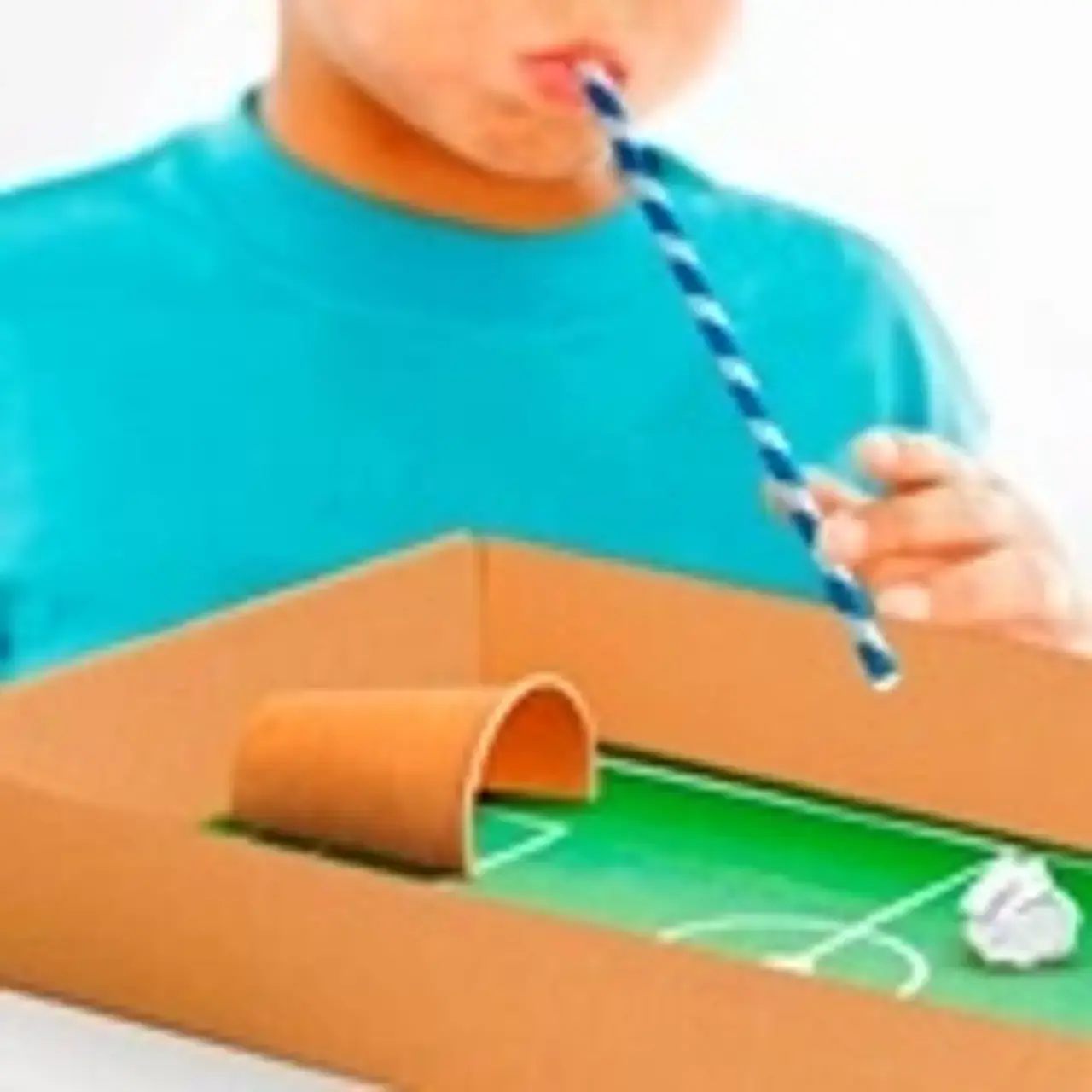 Hier finden Sie die Bastelanleitung für ein Pustespiel, mit dem Sie Ihre eigene Familien-Meisterschaft austragen können. Sie benötigen nur eine Schachtel, einen Becher, Farbe, Pinsel, Schere, Papier und Strohhalme.